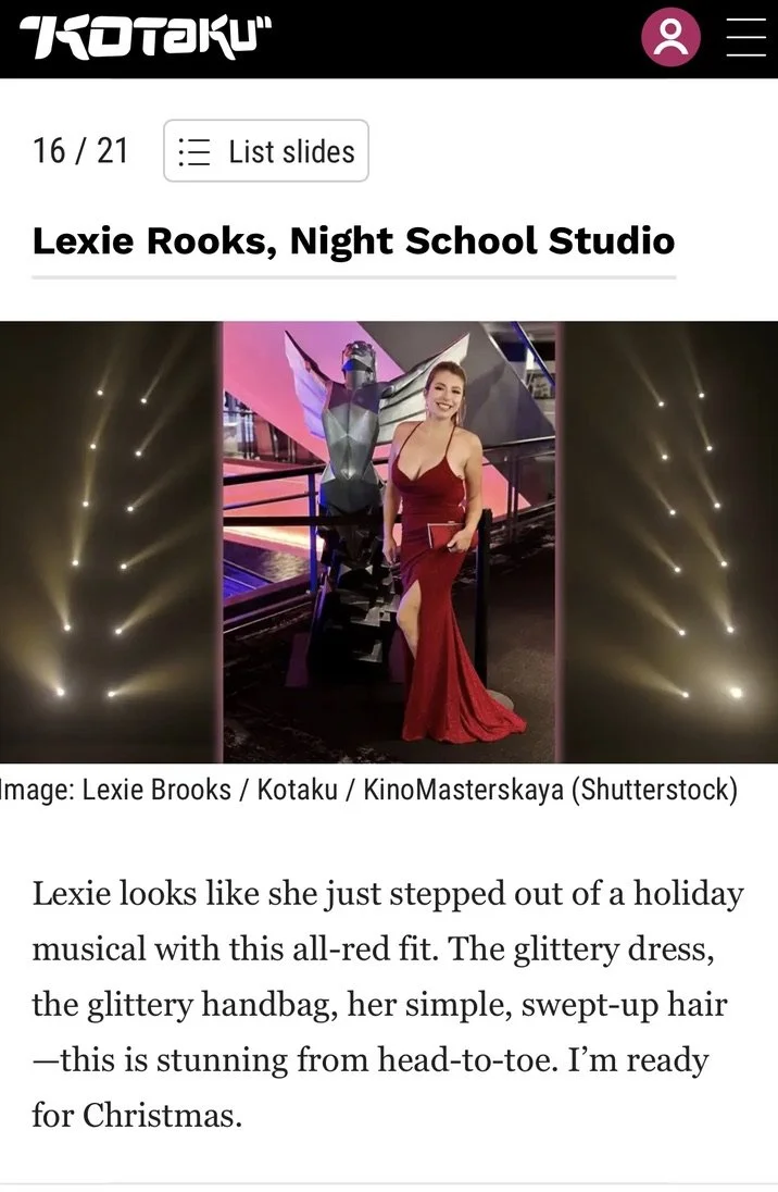 Lexie was included on Kotaku’s 2023 Game Awards best dressed list